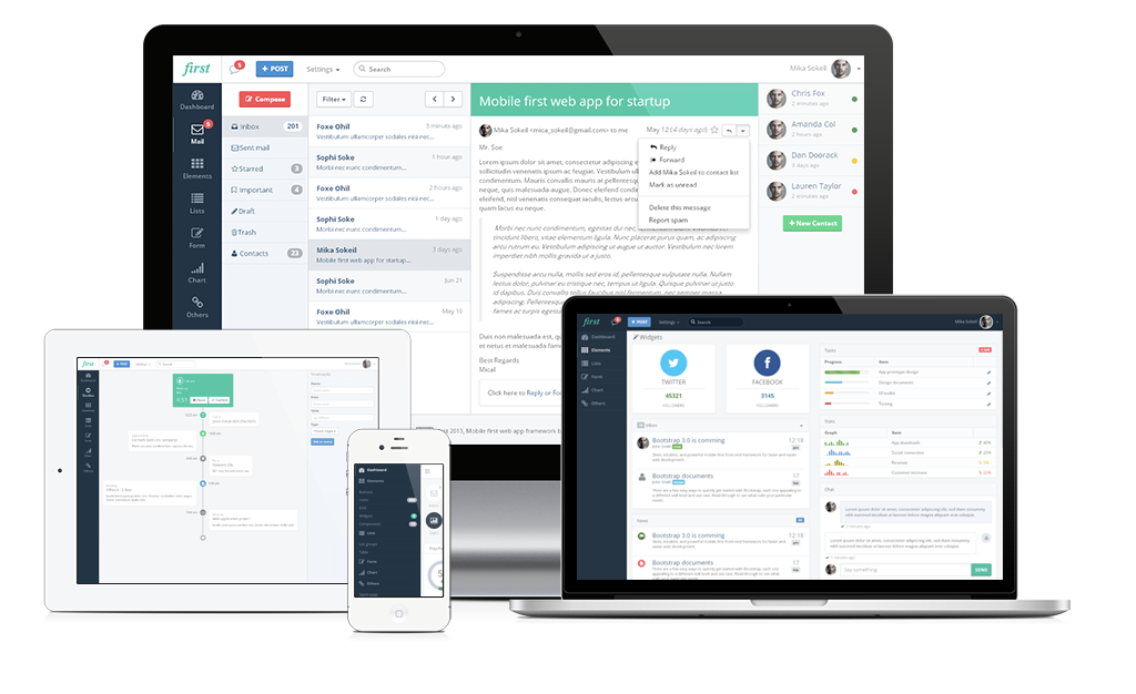 This project is fully responsive, but it's mobile first. it provide the off screen nav, and almost all the widgets are copatible to all the screen sizes.